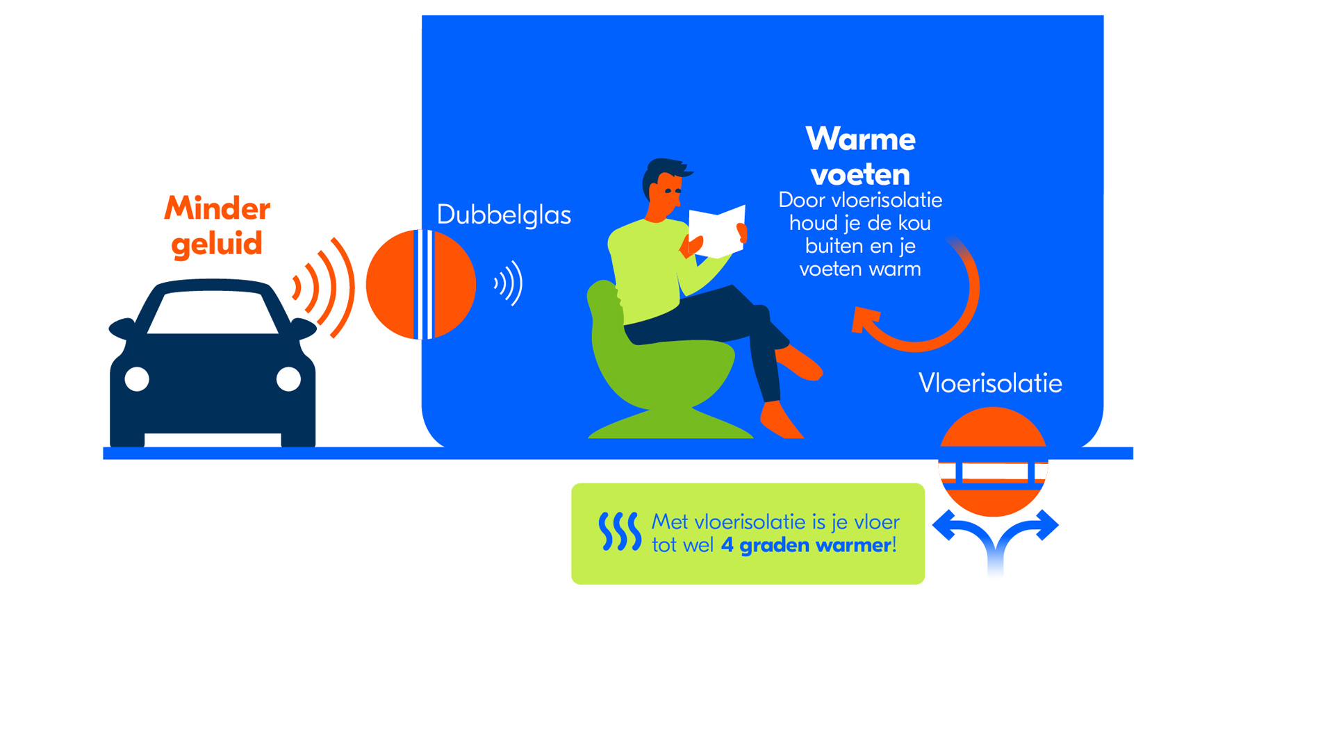 Je huis wordt een stuk aangenamer door verduurzaming. Door het huis volledig te isoleren, blijft in de winter warme lucht binnen. In de zomer houdt de isolatie de hitte van buiten zoveel mogelijk tegen. Dat betekent het hele jaar door een aangename temperatuur in huis én minder stookkosten!