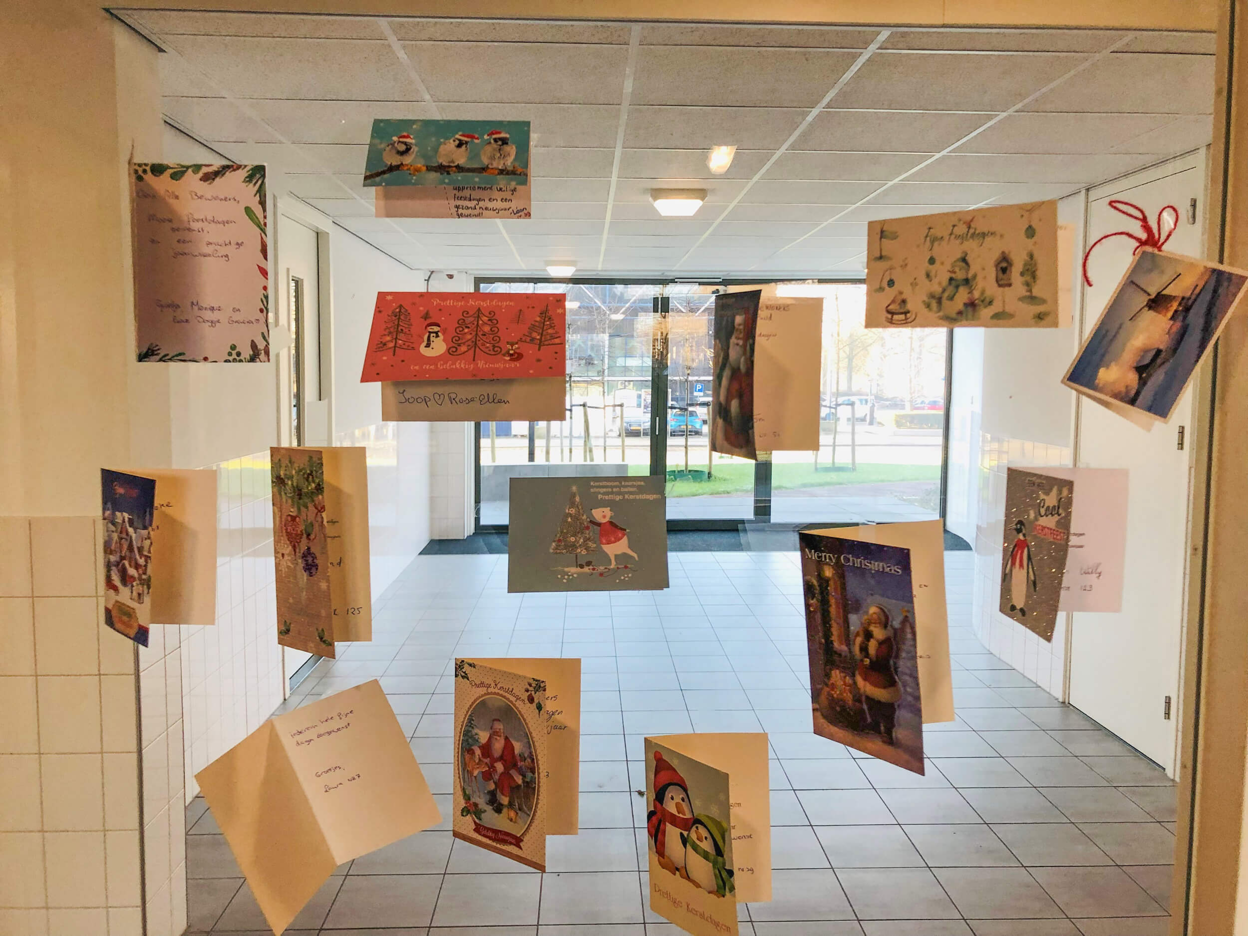 In de centrale hal van de Molenwiek staat een mooi versierde kerstboom. Willy vertelt dat ze vorig jaar met een groot aantal bewoners een kunstboom kochten. “Dan gaat er in de app rond wie mee wil doen. Niets is verplicht. Dit zijn mooie initiatieven. En kijk eens hoe gezellig het staat.”