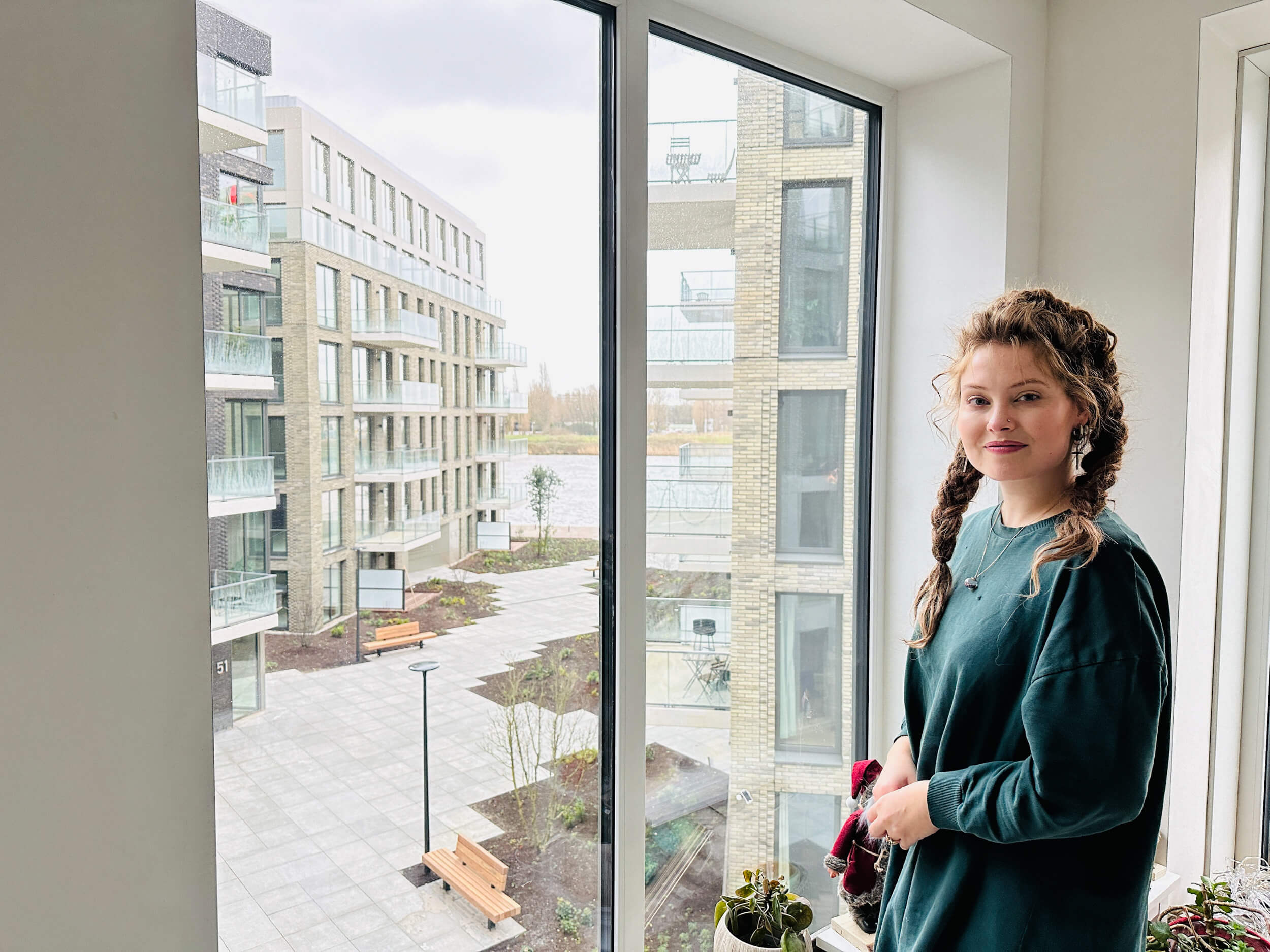 Op 5 december 2023 kreeg Sarina de sleutel van haar nieuwe sociale huurwoning. Het appartement op Cruquiuseiland in Amsterdam voelt echt als een cadeautje. “De locatie is perfect, de voorzieningen in de wijk zijn uitstekend, mijn woning is groener dan groen en het uitzicht is fantastisch.”