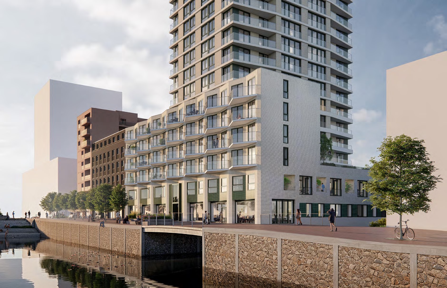 Vlakbij het centrum van Amsterdam, in de nieuwe wijk Sluisbuurt, bouwen we een woongebouw met 183 sociale huurwoningen en 45 middensegment huurwoningen. Je woont er in een groene stadswijk aan het water. In het gebouw komen verschillende ontmoetingsplekken, zoals een daktuin en een Huis van de Wijk. Ook komen er winkels, kantoren en horeca.