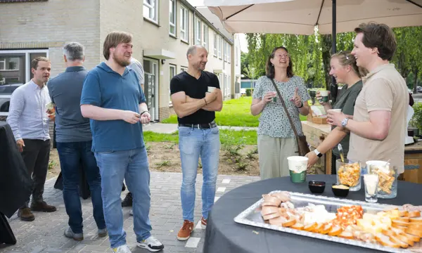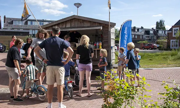 De nieuwe bewoners van het Lorentzhof in het Leusderkwartier in Amersfoort waren op 10 juli van harte welkom om samen te komen. Onder het genot van een drankje en een snack – met een frietkar als smakelijke blikvanger – vierden ze samen de komst van 17 nieuwe duurzame eengezinswoningen in deze geliefde wijk.