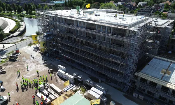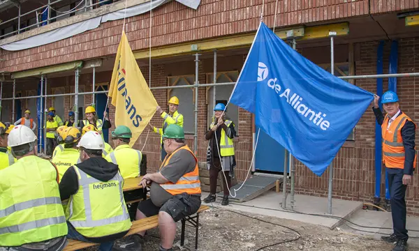 Eind vorige week bereikten we het hoogste punt van appartementengebouw Sluiskade in Almere Haven. De Alliantie realiseert hier 32 huurappartementen voor het middensegment. Huurders uit Almere Haven die een sociale huurwoning achterlaten, krijgen voorrang op een woning in Sluiskade.