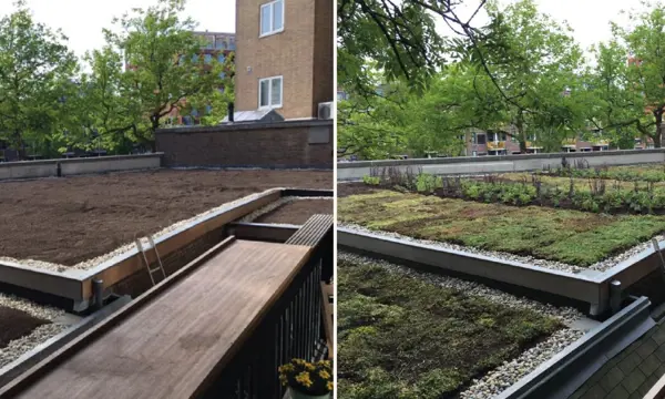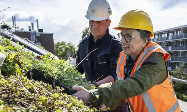 In Bussum is de circulaire renovatie van 12 sociale huurwoningen gestart. Wethouder Barbara Boudewijnse van gemeente Gooise Meren legde tijdens een kijkmiddag voor branchegenoten symbolisch de laatste ‘pocket’ op het eerste groene dak. Deze pocket met beplanting is onderdeel van een lichtgewicht, circulair en biobased daksysteem.