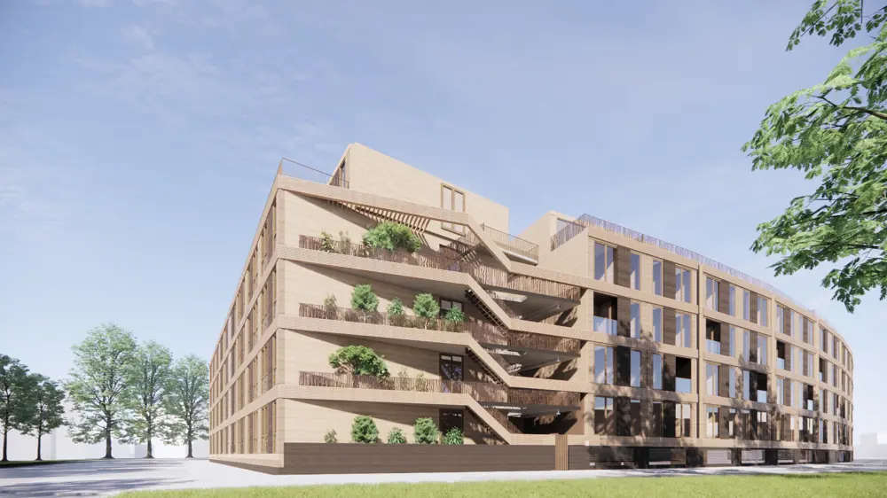 Bouwen met hout is natuurlijk niet nieuw. Toch gaat het er heel anders aan toe dan vroeger. Nu gebruiken we innovaties als Laminated Vineer Lumber om onze woningen stevig, brandveilig, isolerend én geluidsdicht te maken. Zo bouwen we een appartementencomplex dat praktisch net zo sterk is als een betonnen gebouw, maar met meer dan 90% minder CO2-uitstoot.