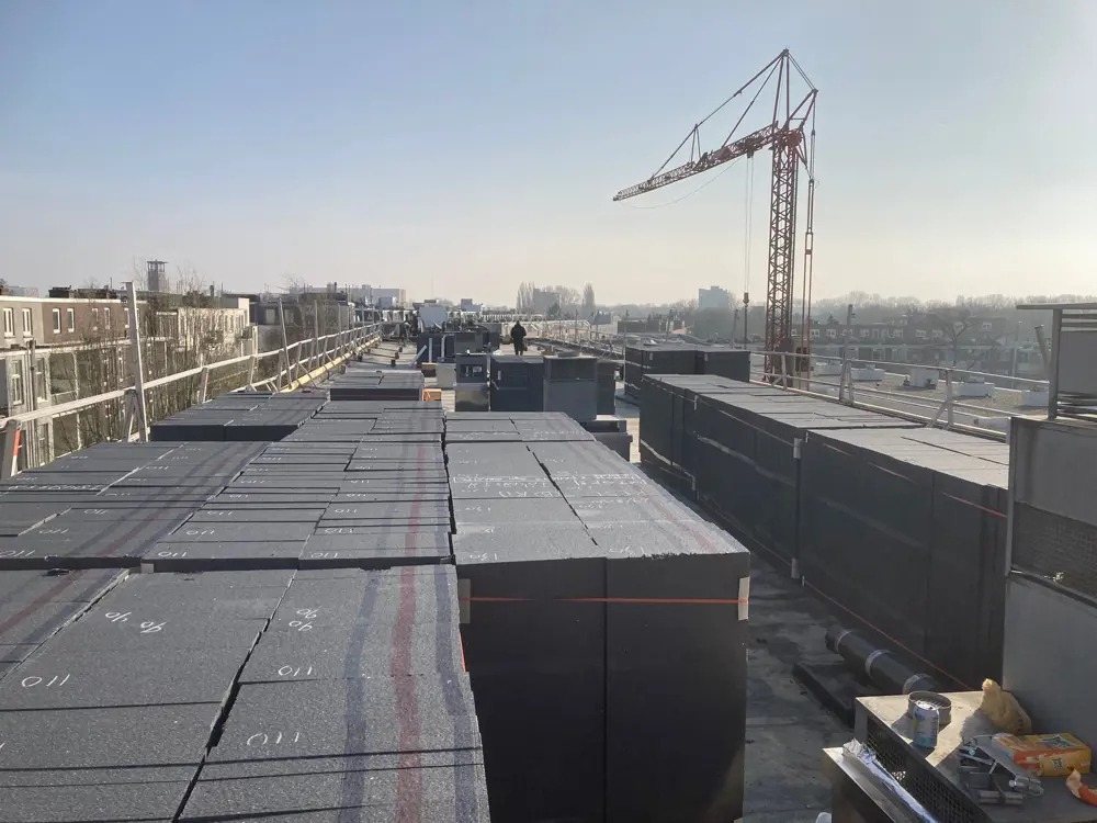 De Alliantie is bovendien bezig met een materiaaltransitie. Samen met onze dakpartner Consolidated gaan we biobased isolatiemateriaal op de daken gebruiken. Daar doen we pilots mee. En omdat het allemaal nieuw is en de functie van daken verandert, wil de Alliantie weten hoe dat materiaal zich gedraagt.