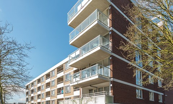 We bouwden 'De Horsten', een nieuw gebouw van 6 verdieping met 5 woonlagen tegen een bestaande flat aan. Het bestaande gebouw kreeg meteen een grote renovatiebeurt.