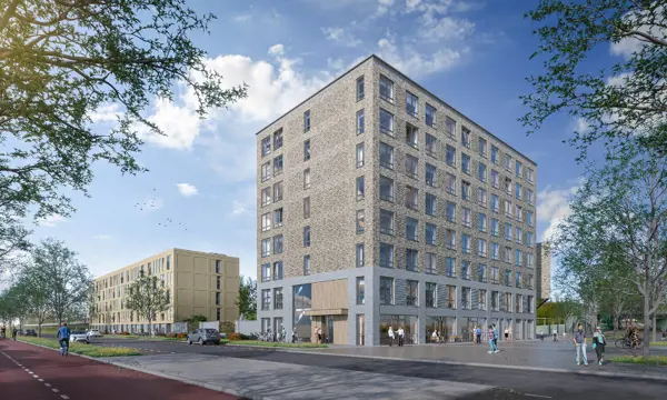 Wonen in een duurzame houten woning. Dat kan straks in het Homeruskwartier. Daar bouwen we in 1 woongebouw 103 houten woningen; sociale en middensegment huurwoningen. Dit houten gebouw past goed bij onze duurzaamheidsambities.