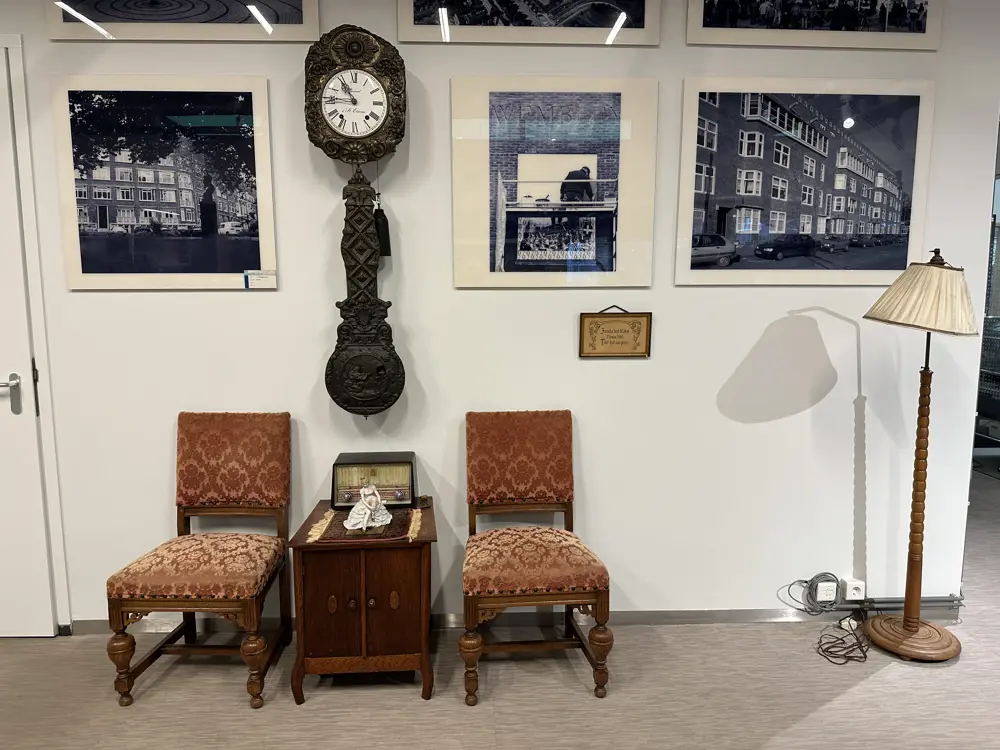 In ons Amsterdamse kantoor geven gedoneerde decoraties uit de woningen van huurders de entree een uniek karakter. Van meubels tot accessoires, elk item vertelt het verhaal van bewoners en voegt een persoonlijke touch toe aan de ruimte. Hierdoor krijgt de lobby een bijzondere en warme uitstraling die de geschiedenis van de stad weerspiegelt.